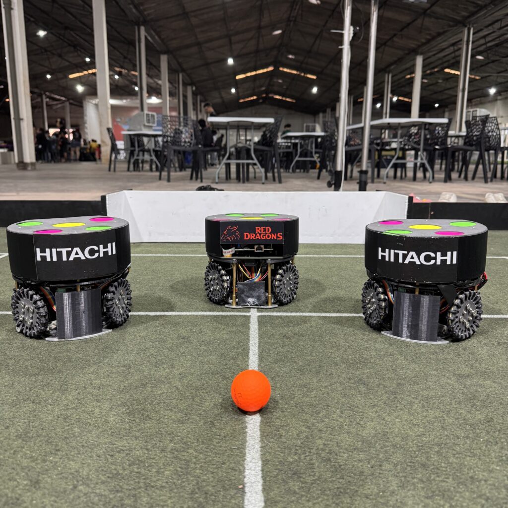 O futebol de robôs é uma modalidade competitiva na qual nossa equipe está envolvida. As competições exigem que os participantes desenvolvam e programem robôs autônomos de tamanho restrito. Esses robôs operam sem intervenção humana direta durante o jogo, com comunicação limitada apenas a um computador central, responsável pelo processamento de imagens e dados de controle. Além das competições presenciais, as partidas também podem ser realizadas em ambiente simulado.